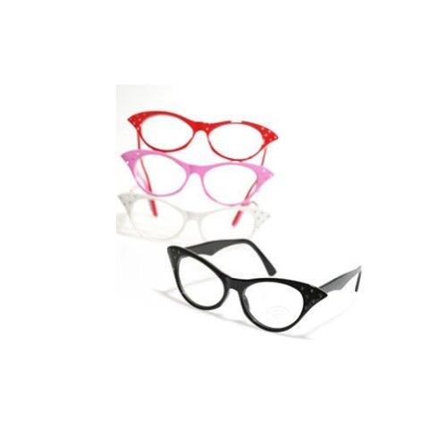 Be a Star with Celebrity Glasses! These cat eye faux glasses are just what you need to complete any retro or 50's costume. 6" long across the face. 5 1/4" from temple to ear. Assorted colors. Made of plastic. We have the hottest styles of glasses at the coolest prices. Styles like these are perfect for any Pimp Daddy, John Lennon, or Elvis costume. Make sure you have the hottest shades to cover your eves for you next poker game or casino night! Part of Costumes > Accessories > Glasses/Eyewear