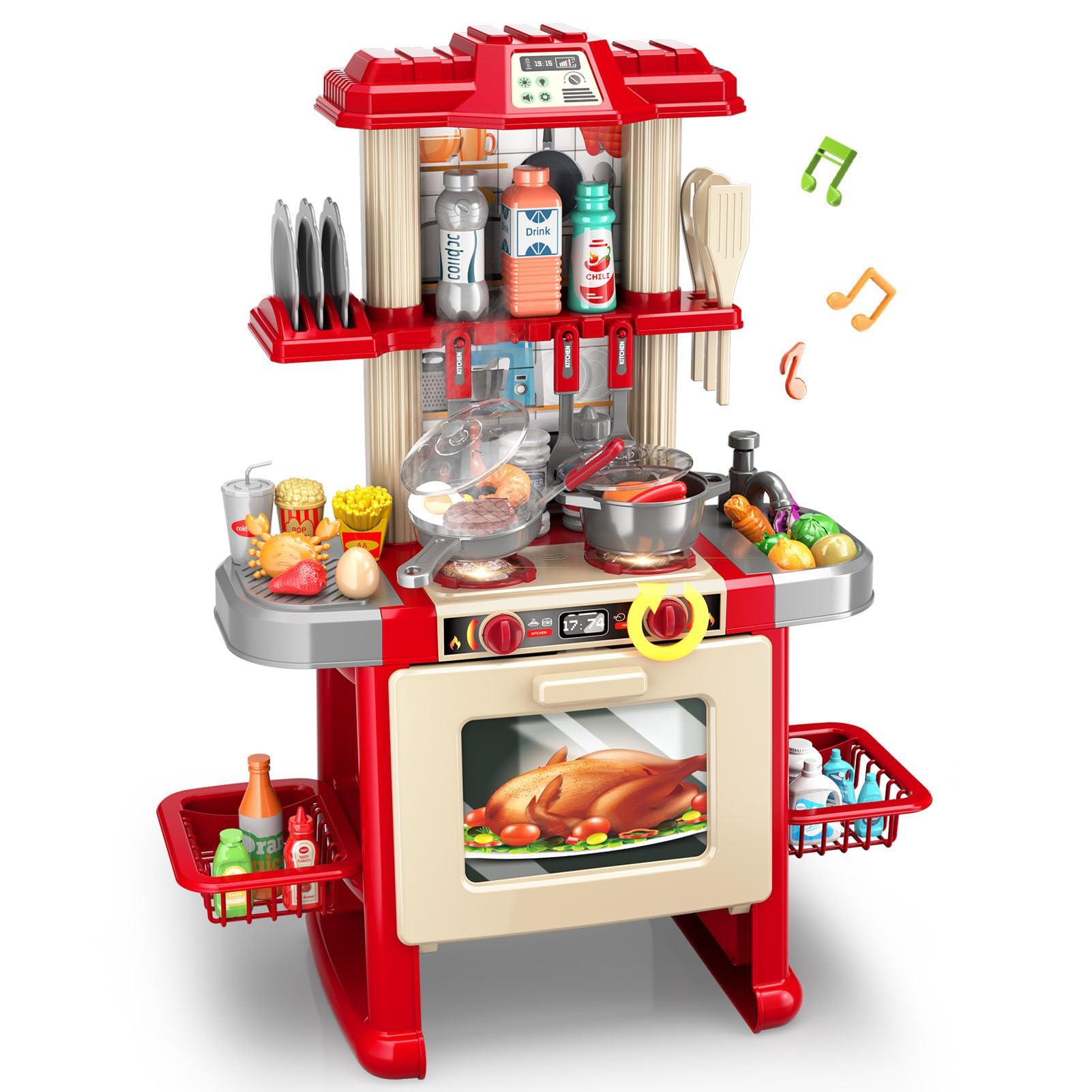 - Multi-Functional Realistic Kitchen GamesThe realistic cooking sound and the effect of lightweight, the water circulation sink makes girls feel like in the real kitchen world. This multifunctional kitchen toy not only provides children with ample "working" space, but also cleverly designed storage areas to keep dishes, spice bottles and other items organized and maintain a play area Neat and beautiful.