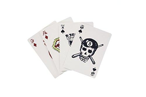 Pokersize cards featuring classic tattoo drawings. The cards are coated and embossed for easy shuffling.
