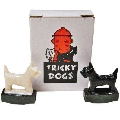 Two magnetic Scottie dogs amuse, confuse and confound. Watch them repel each other, attract each other, and chase each other as you push them around the table. Each unit is individually boxed. Made in the USA by FUN Incorporated's Fishlove Novelty division. Tricky Dogs are approximately 1 inch tall. THIS ITEM IS NOT INTENDED FOR USE BY CHILDREN 12 AND UNDER.